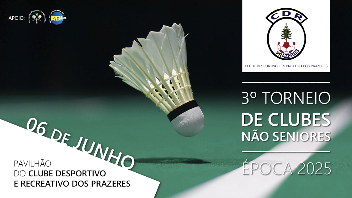 Realiza-se este sábado, 28 de junho 2025, no Pavilhão do Clube Desportivo e Recreativo dos Prazeres, o 3.º Torneio de Clubes Seniores Época 2025, prova do calendário oficial da Federação Portuguesa de Badminton, organizado pelo CDR Prazeres.