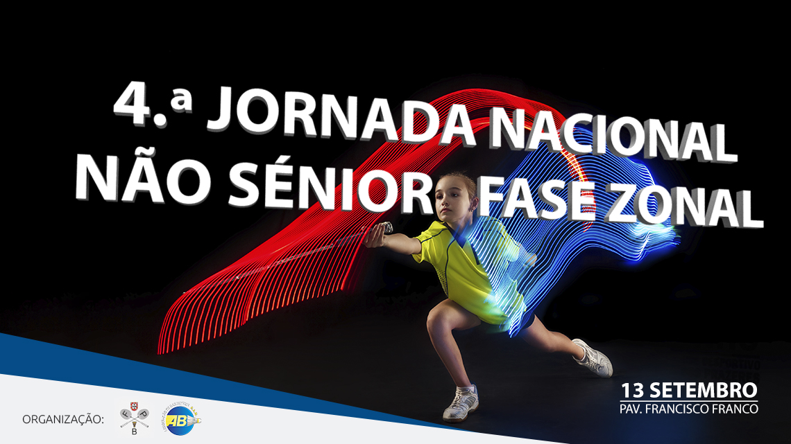 Realiza-se este sábado, 13 de setembro 2025, no Pavilhão da Francisco Franco, a 4.ª Jornada Nacional Não Sénior - Fase Zonal Época 2025, prova do calendário oficial da Federação Portuguesa de Badminton.