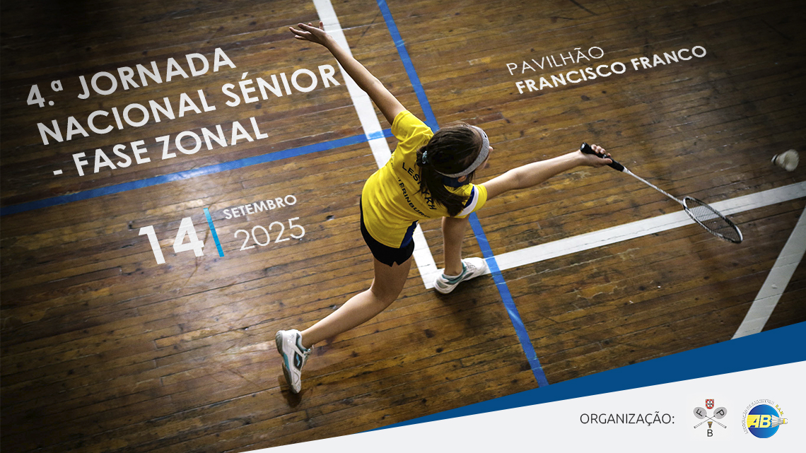 Realiza-se este domingo, 14 de setembro 2025, no Pavilhão da Francisco Franco, a 4.ª Jornada Nacional Sénior - Fase Zonal Época 2025, prova do calendário oficial da Federação Portuguesa de Badminton.