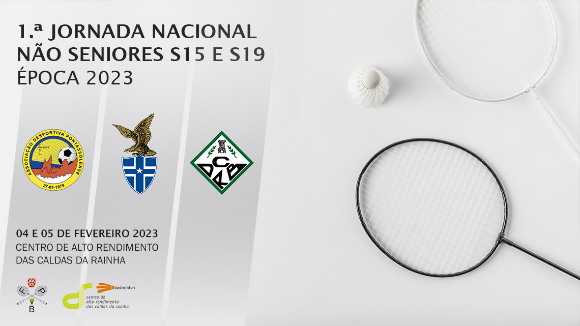 Decorre este fim de semana, 4 e 5 de fevereiro 2023, no Centro de Alto Rendimento das Caldas da Rainha, a 1.ª Jornada Nacional Não Seniores S15, S19, prova do calendário oficial da Federação Portuguesa de Badminton.