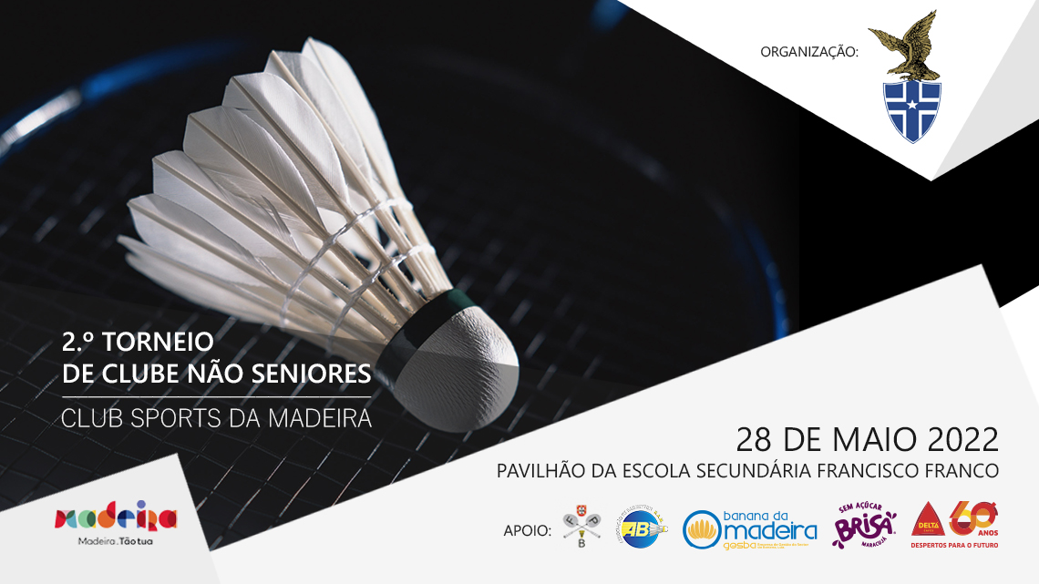 Realiza-se este sábado, 28 de Maio 2022, no Pavilhão da Escola Secundária de Francisco Franco, o 2.º Torneio de Clube Não Seniores Época 2022, prova do calendário oficial da Federação Portuguesa de Badminton, organizada pelo Club Sports da Madeira.