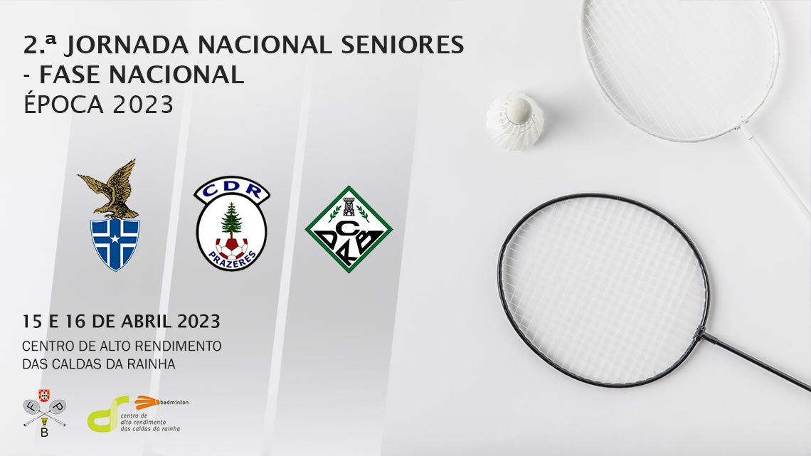 Decorre este fim de semana, 15 e 16 de abril 2023, no Centro de Alto Rendimento das Caldas da Rainha, a 2.ª Jornada Sénior - Fase Nacional Época 2023, prova do calendário oficial da Federação Portuguesa de Badminton.