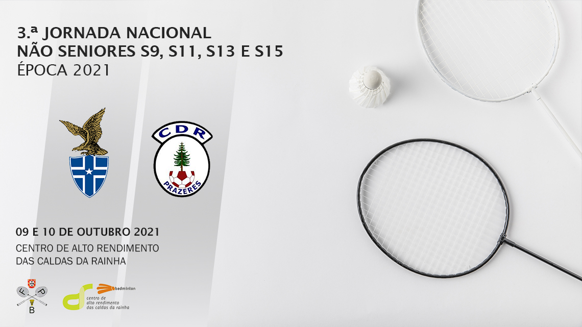 Decorre este fim de semana, 09 e 10 de Outubro 2021, no Centro de Alto Rendimento das Caldas da Rainha, a 3.ª Jornada Nacional Não Seniores S9, S11, S13 e S15 Época 2021, prova do calendário oficial da Federação Portuguesa de Badminton.