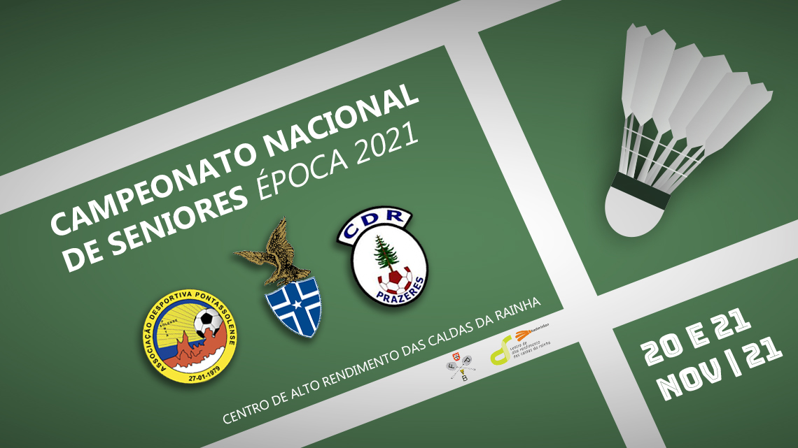 Realiza-se este fim de semana, 20 e 21 de Novembro 2021, no Centro de Alto Rendimento das Caldas da Rainha, Campeonato Nacional de Seniores Época 2021, prova do calendário oficial da Federação Portuguesa de Badminton.