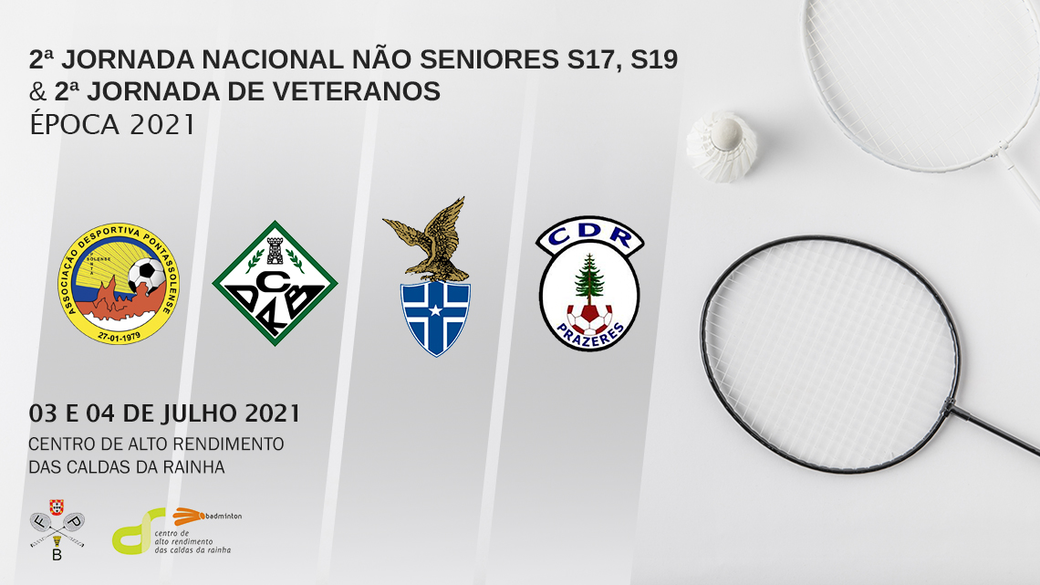 Decorreu este fim de semana, 03 e 04 de Julho 2021, no Centro de Alto Rendimento das Caldas da Rainha, a 2.ª Jornada Nacional Não Seniores S17, S19 e 2.ª Jornada de Veteranos Época 2021, prova do calendário oficial da Federação Portuguesa de Badminton.