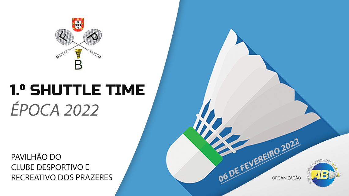 Realiza-se este domingo, 06 de Fevereiro 2022, no Pavilhão do Clube Desportivo e Recreativo dos Prazeres, o 1.º Shuttle Time 2022, prova do calendário oficial da Federação Portuguesa de Badminton, organizada pela ABRAM.