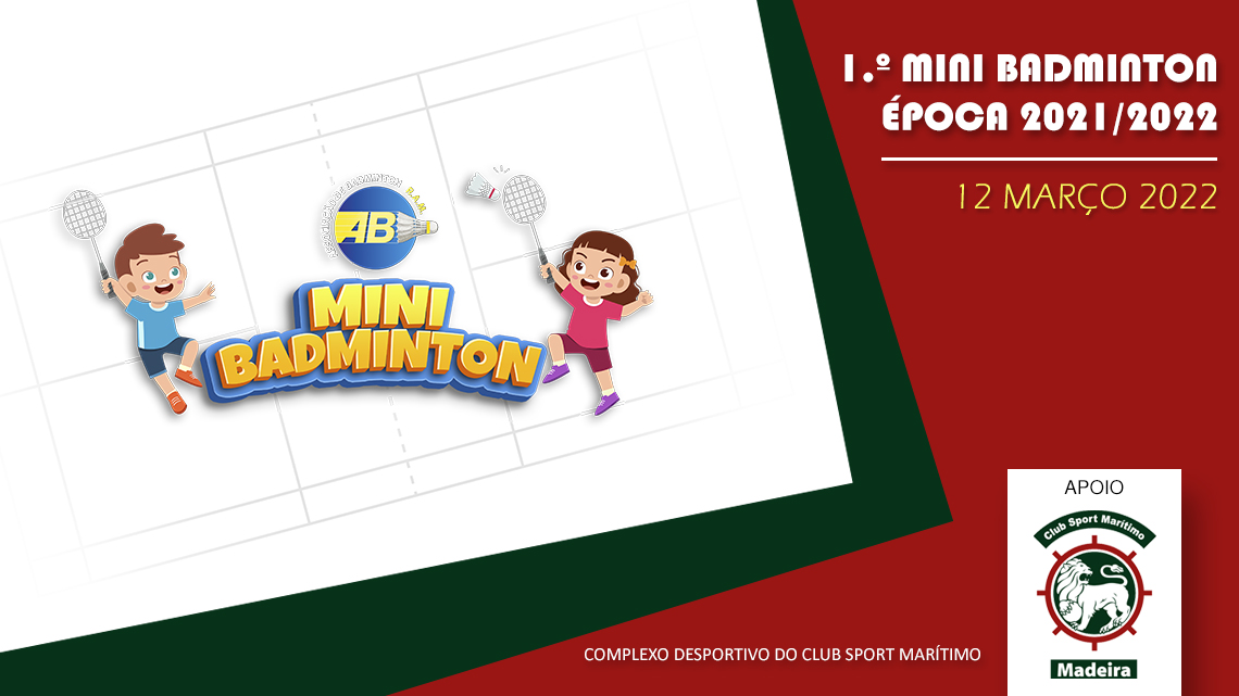 Realiza-se este sábado, 12 de Março 2022, no Complexo Desportivo do Club Sport Marítimo, o 1.º Mini Badminton Época 2021/2022, evento organizado pela ABRAM, com o apoio do Club Sport Marítimo.