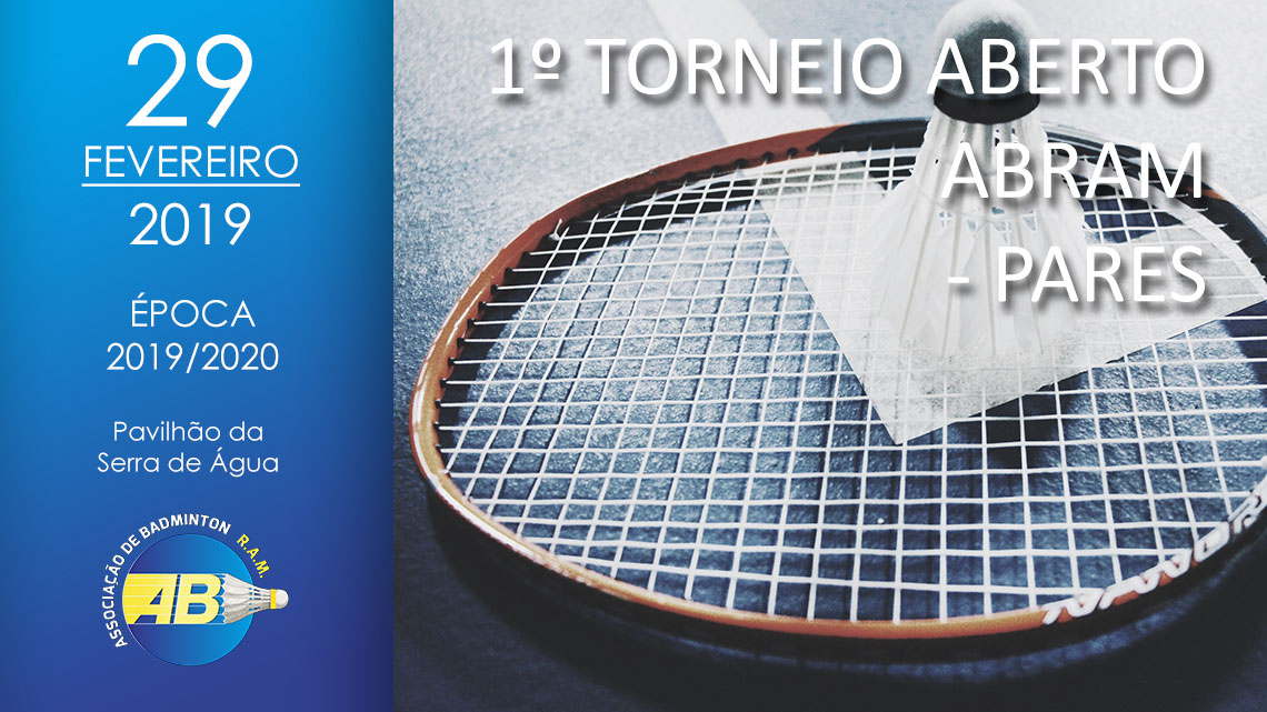 Realiza-se este sábado, 29 de Fevereiro 2020, no Pavilhão da Serra de Água, o 1º Torneio Aberto ABRAM - Pares Época 2019/20, prova do calendário regional, organizado pela ABRAM, tendo como Juiz-Árbitro da prova Vânia Camacho.
