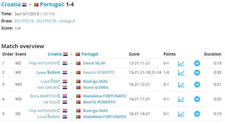 O atleta Nuno H. Gomes teve um excelente desempenho nesta sua estreia pela Seleção Nacional num Campeonato da Europa, vencendo no encontro de Pares Homens, fazendo dupla com o atleta Rodrigo Dias, frente ao par croata Luka ČREP / Ivan GRUBIĆ, por 21-16 / 21-12.