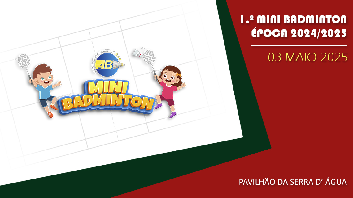 Realiza-se este sábado, 3 de maio 2025, no Pavilhão da Serra de Água, o 1.º Mini Badminton Época 2024/2025, evento organizado pela ABRAM.